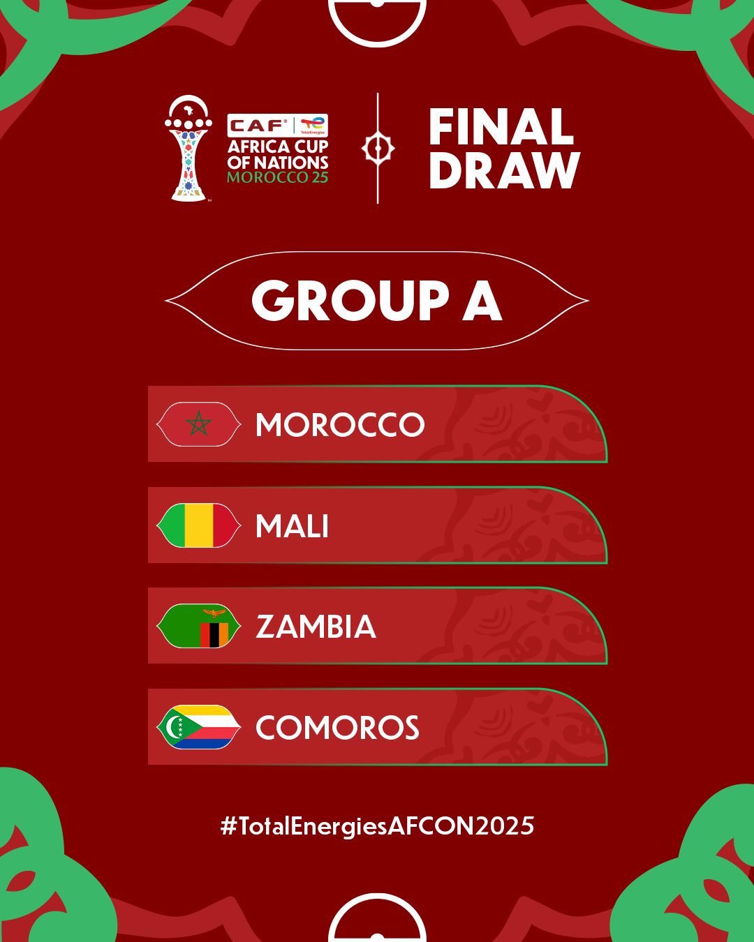 Mali, Zambia and Comoros complete a competitive Group A that features historical ambition, rising talent and teams with a proven capacity to disrupt expectations.