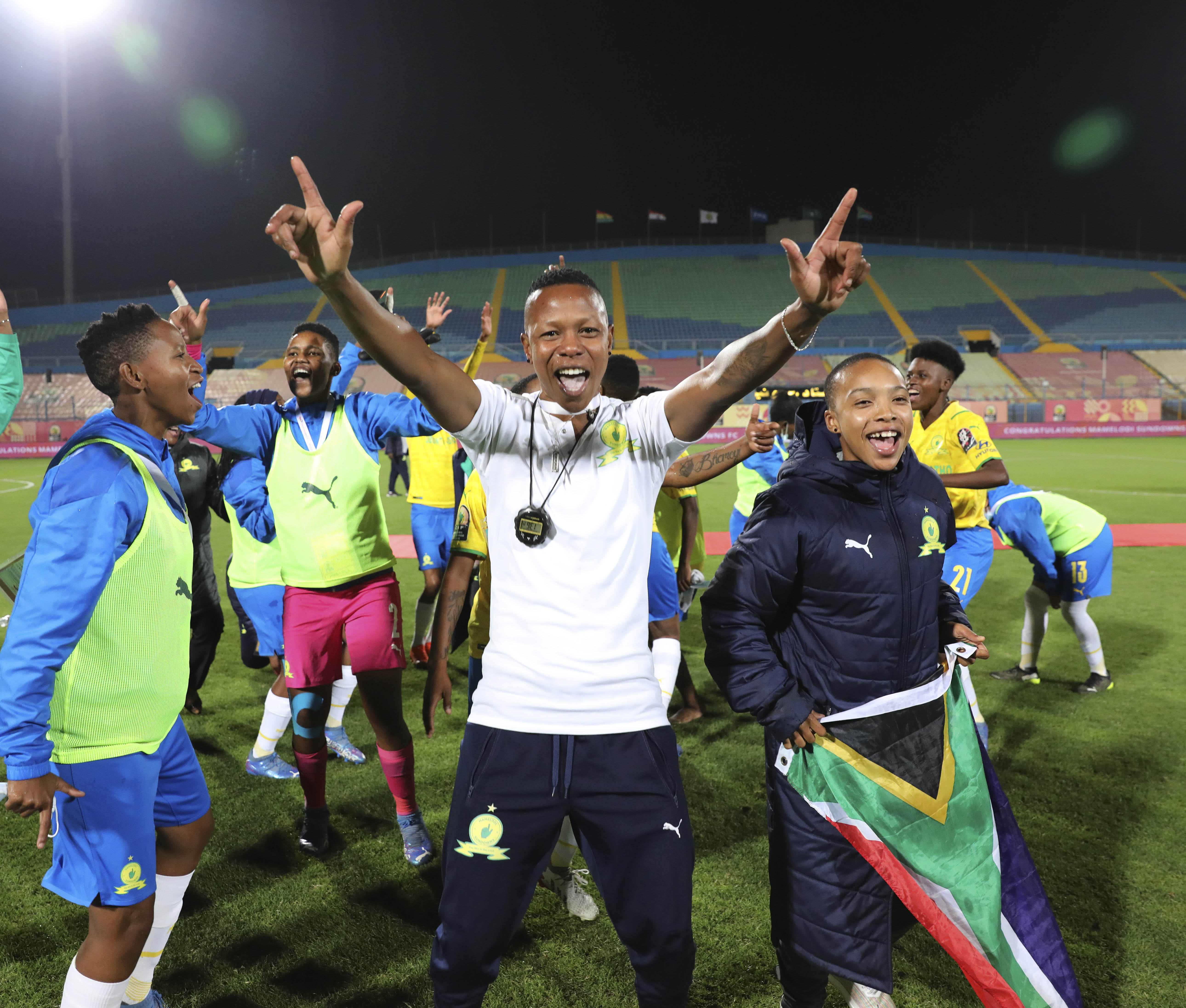 Agnes Thandiwe Nkosi, coach of Mamelodi Sundowns celebrates a victory during the 2021 TotalEnergies CAF Women’s Champions league final match between Hasaacas Ladies and Mamelodi Sundowns at 30 June Stadium, Egypt, Cairo, on 19 November 2021 ©Samuel Shivambu/BackpagePix