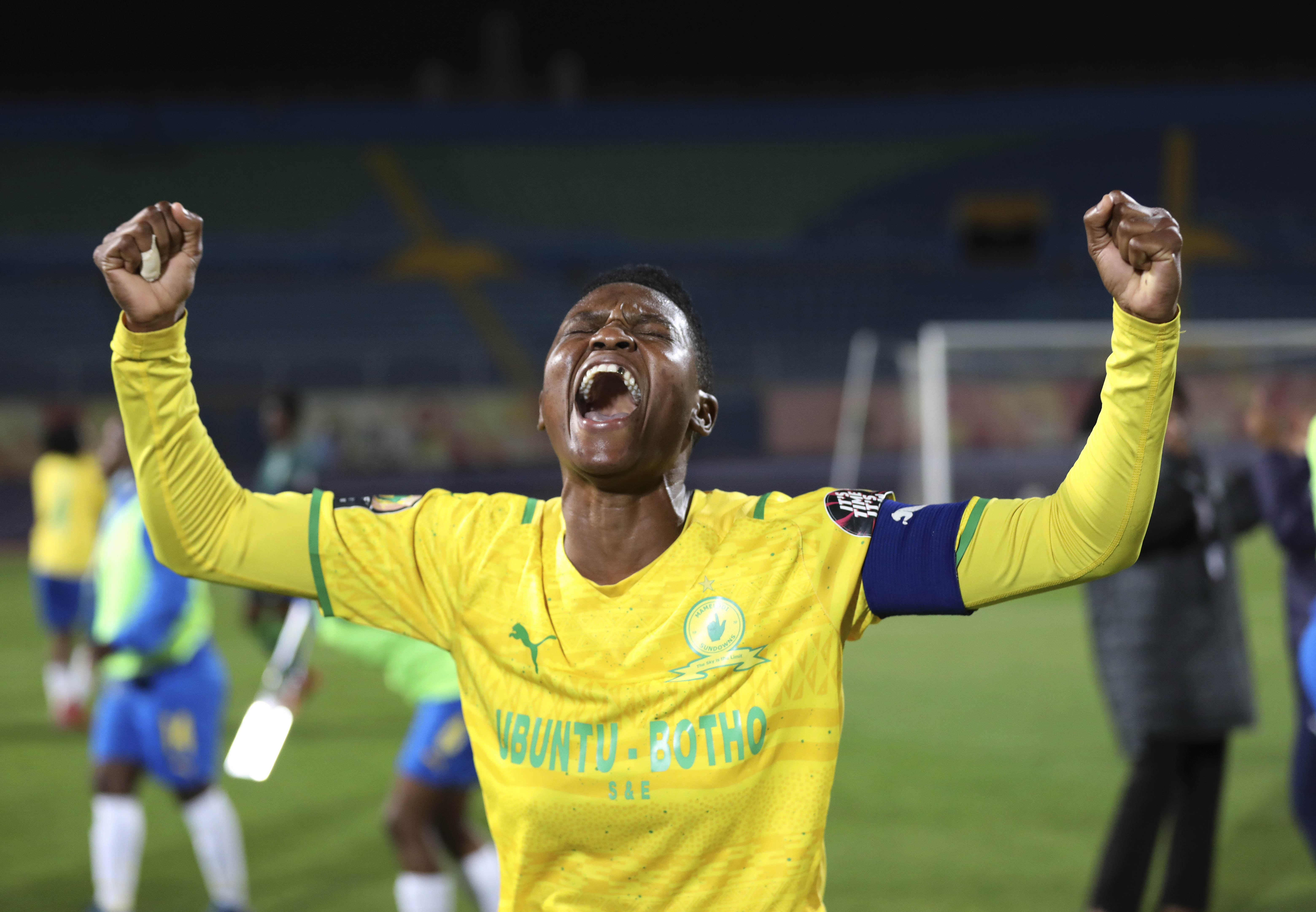 Zanele Portia Nhlapho of Mamelodi Sundowns celebrates victory during the 2021 TotalEnergies CAF Women’s Champions League football Final between Hasaacas v Sundowns at 30 June Stadium, Cairo, Egypt on 19 November 2021 ©BackpagePix
